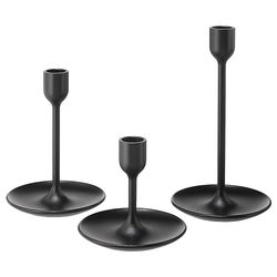 काले एल्यूमीनियम कैंडलस्टिक धारकों के साथ 3 मोर्कन आयरन टेपर मोमबत्तियों का सेट रोमांटिक क्रिसमस जन्मदिन डिनर घर सजावट